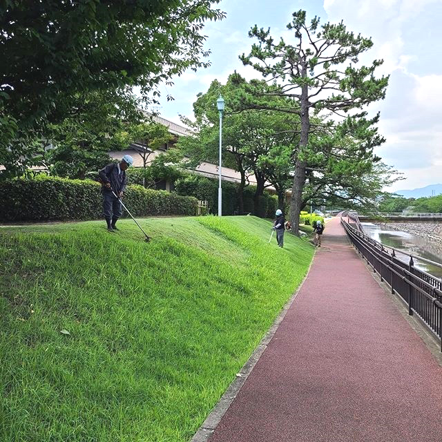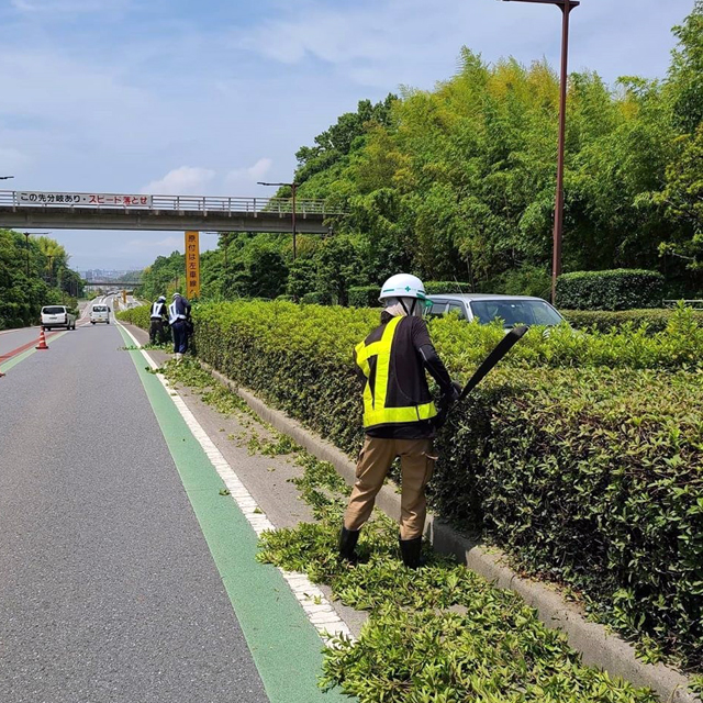 株式会社 榮神興業の公共事業 大分県内の道路に面した植栽の剪定からフェンスの修理や入替、それに伴う土木工事にいたるまで、長年の経験と従業員・スタッフとの連携を基に、安心・安全・綺麗な住環境の保全に努めています。。 △ 国道の植栽剪定 △ 国道の植栽剪定 △ 国道の植栽剪定 △ 国道の植栽剪定 △ 国道の植栽剪定 △ 国道の植栽剪定 △ 公共施設の剪定 △ 公共施設の剪定 △ 公共施設の剪定 △ 公共施設の剪定 △ 公共施設の剪定 △ 公共施設の剪定